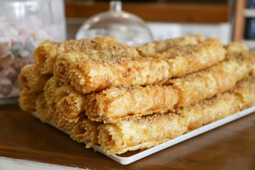 Σίγουρα ο Μαυρόγιαννης φημίζεται για τις υπέροχες μυρωδάτες δίπλες του. Σε πολλές περιοχές της Ελλάδας, τιμάται αυτό το γλυκό, αλλά νομίζω στη Λακωνία το υπέρ λατρεύουμε! Και οι δίπλες στο εργαστήριό του, είναι καθημερινή υπόθεση. Γι αυτό θα τις γευτείς, πάντα φρέσκιες και τραγανές.