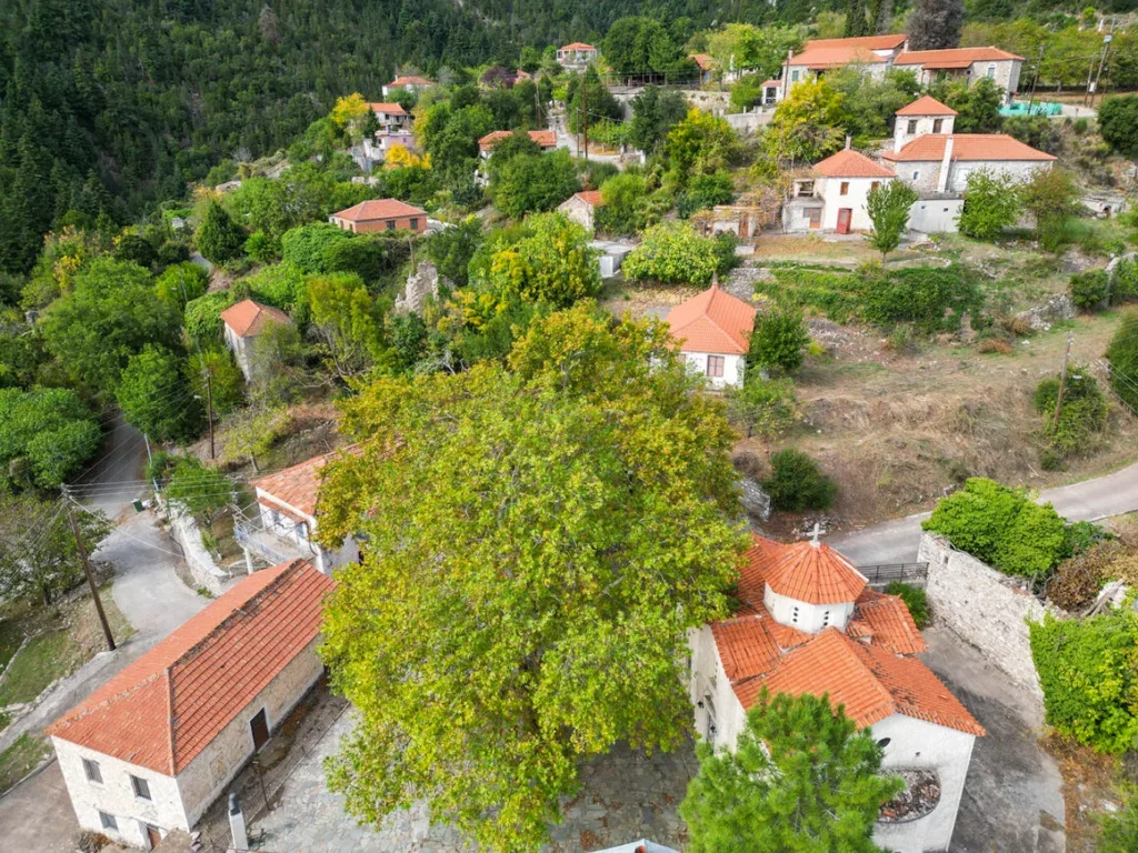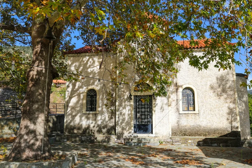 Το καλύτερο σημείο για να αγναντέψεις τις πλαγιές του Πάρνωνα είναι η κεντρική εκκλησία πάνω στην πλατεία.