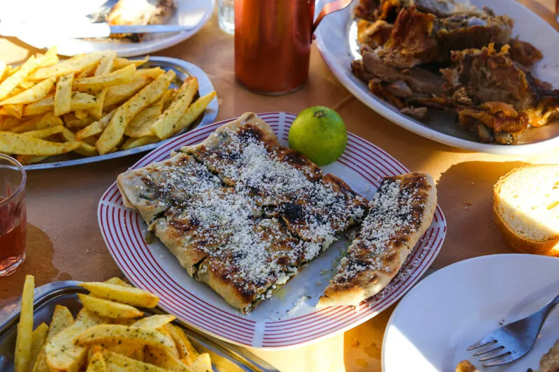 Ό, τι παραγγείλεις θα σε αποζημιώσει και με το παραπάνω. Εστίασε στα παραδοσιακά πιάτα. Μην ξεχάσεις να πάρεις πιταρούδι ή σαϊτι ή καλτσούνι. Όπως και να το πεις το ίδιο πράγμα είναι. Το θέμα δεν είναι να βρούμε τη σωστή ονομασία αλλά να το φάμε. Και μην κάνεις το λάθος, να παραγγείλεις μόνο ένα. Για σένα που δεν ξέρεις για τι πράγμα μιλάμε, να θυμάσαι πως αυτή είναι μια παραδοσιακή πίτα του Πάρνωνα, με άγρια χόρτα και χειροποίητο φύλλο, ψημένη σε φωτιά.