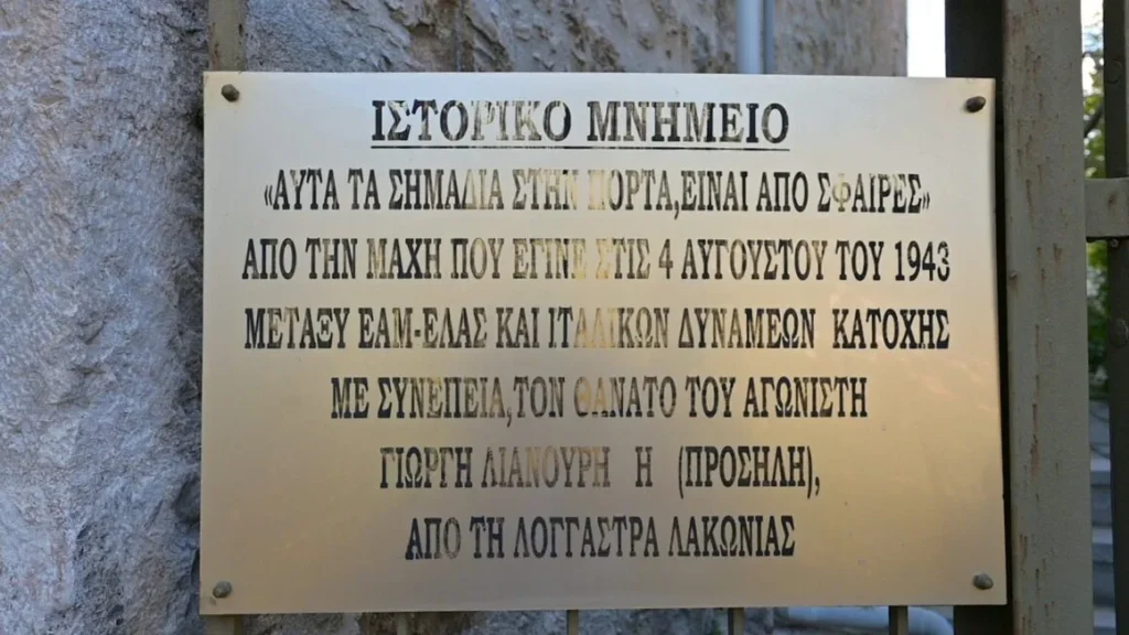 Στην κεντρική εκκλησία του χωριού, Υπαπαντή του Κυρίου, η σιδερένια πόρτα αποτελεί ιστορικό μνημείο. Εδώ λοιπόν στις 4 Αυγούστου το 1943, δόθηκε η μάχη μεταξύ Ιταλικών δυνάμεων κατοχής και Ελλήνων. Οι τρύπες στην πόρτα είναι από σφαίρες όπως αναγράφει η πινακίδα και έχουν μείνει από τότε, ως έχει.