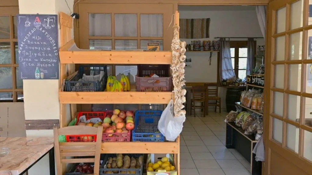 Αλλά να που σήμερα, αυτός ο τόπος ζωντανεύει ξανά και γίνεται από πέρασμα, στέκι! Πώς; Με το καφενείο – μπακάλικο – ταχυδρομείο – ό, τι προκύψει στο χωριό. Γιατί σε αυτά τα μέρη όπως και τότε, έτσι και τώρα, το καφενείο ήταν κάτι σαν κέντρο. Εκεί που θα ψώνιζες, θα έπινες καφέ, θα μάθαινες τα νέα, θα τσίμπαγες κάτι το μεσημέρι μετά τις δουλειές στο χωράφι.