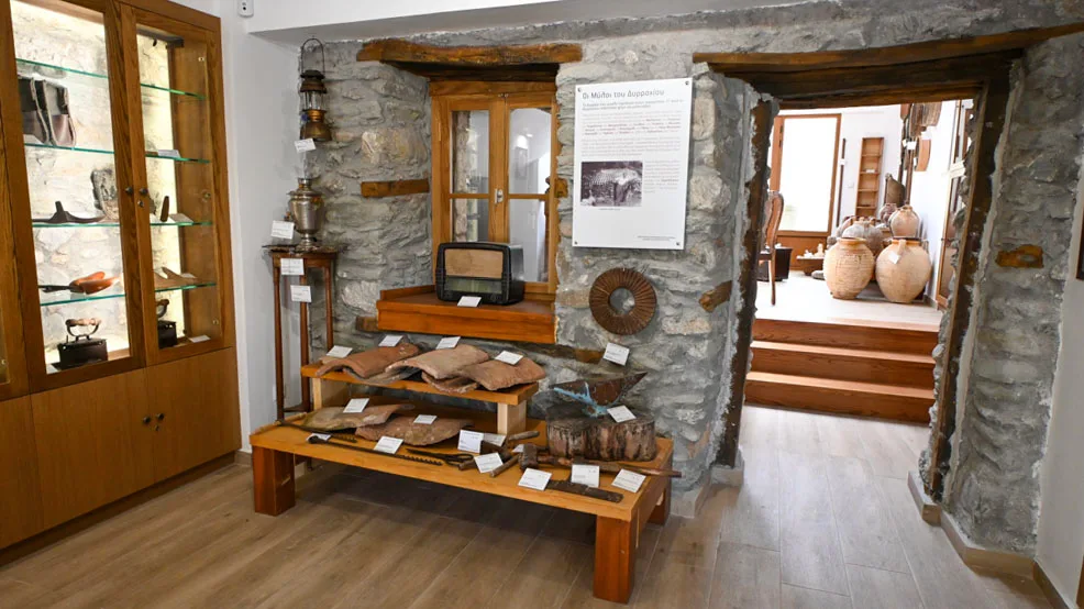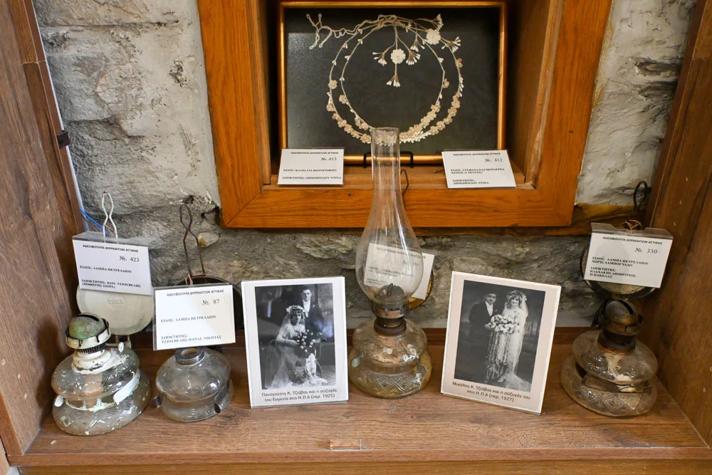 Στο υπόγειο, φιλοξενούνται εκθέματα από εργαλεία γης που χρησιμοποιούσαν οι γεωργοί. Ο ισόγειος χώρος, περιλαμβάνει μια πλούσια συλλογή από την καθημερινότητα των κατοίκων. Εκτός από διάφορα οικιακά είδη και σκεύη, υπάρχουν μικροεργαλεία, στάμνες, πιθάρια, ζυγαριές, φωτογραφίες ντόπιων, χειρόγραφα, παλιά βιβλία ακόμη και στέφανα από γάμους και το αρχείο της τοπικής εφημερίδας.
