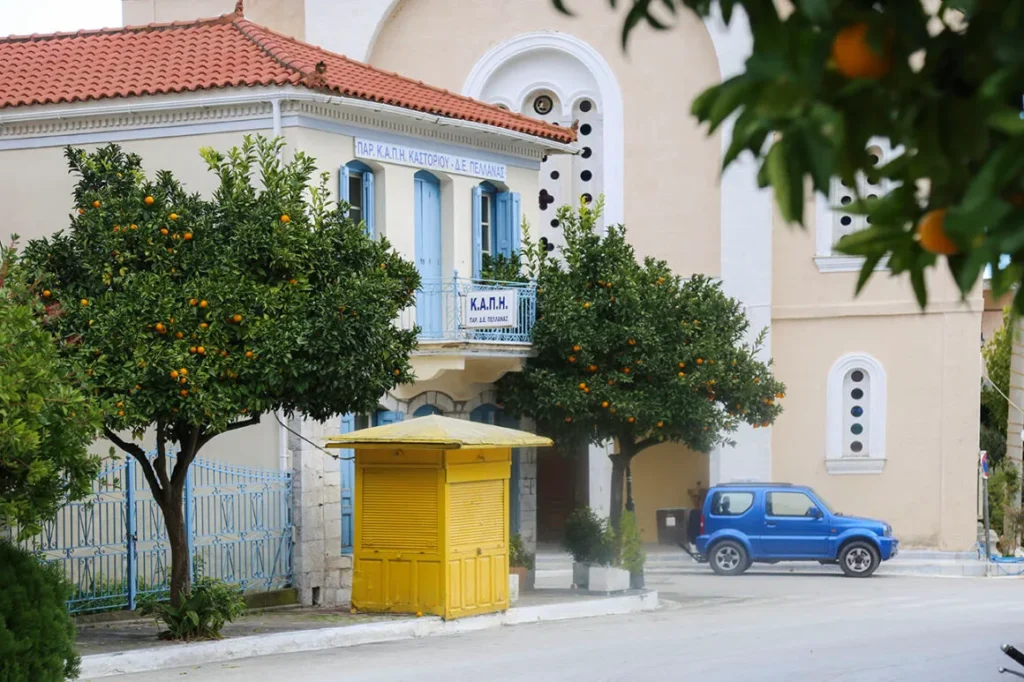 Τελευταίος μας σταθμός, 9 χιλιόμετρα νοτιοανατολικά (πάντα από τον ίδιο επαρχιακό δρόμο) φτάνουμε στο πολύχρωμο Καστόρι. Το χωριό του Κάστορα (υπάρχει και το ομώνυμο ποτάμι) ή αλλιώς Καστανιά.