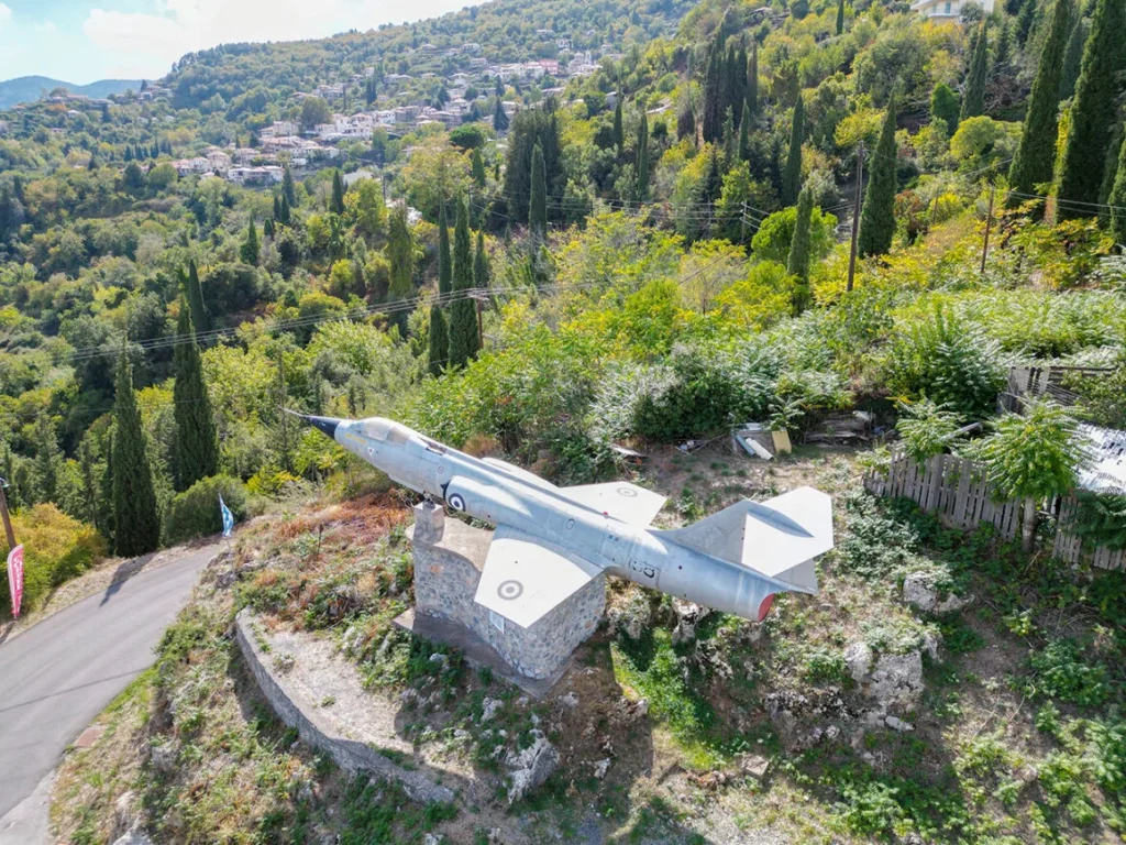 Το μαχητικό αεροσκάφος στην είσοδο του χωριού ερχόμενοι από Λογκανίκο