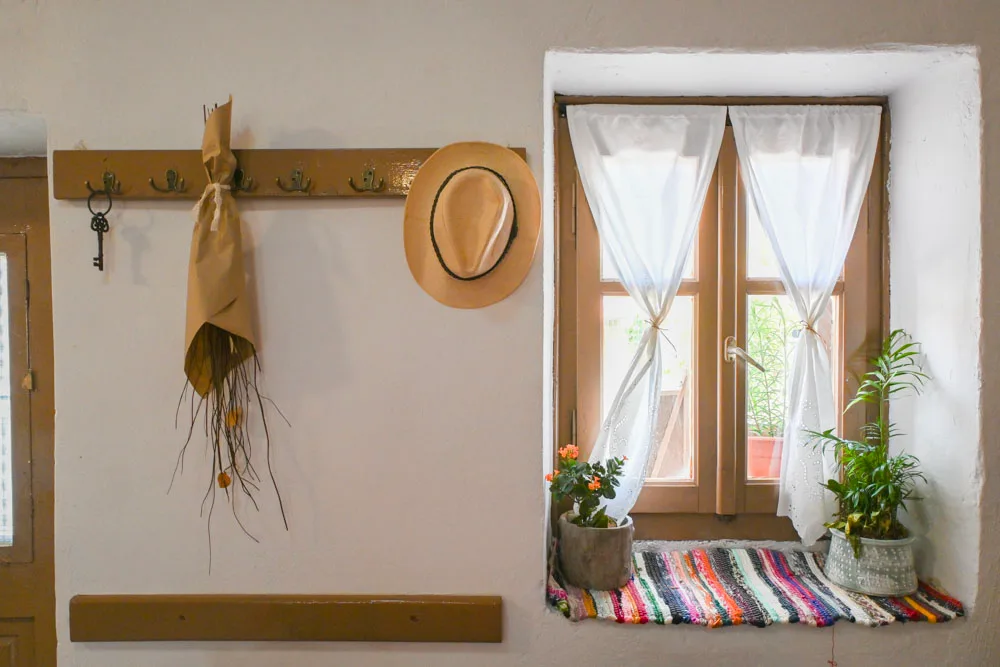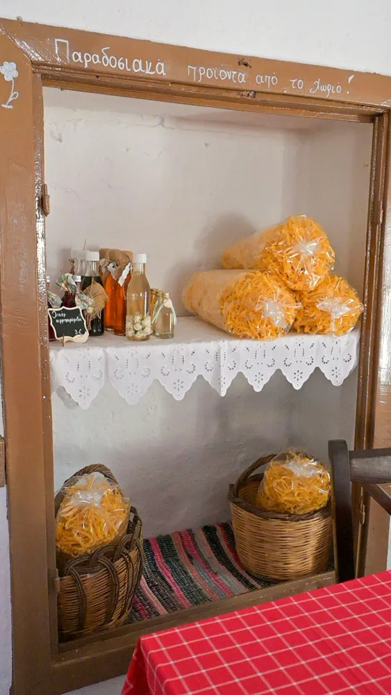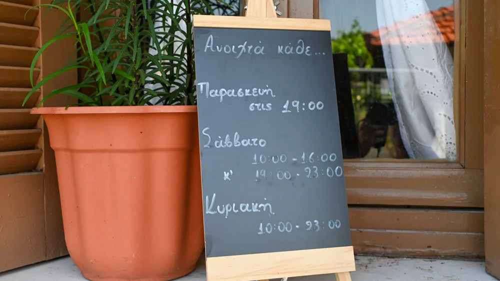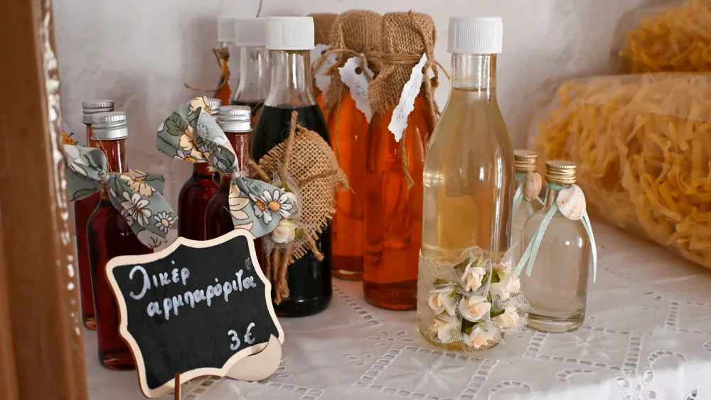 Η σάλα έχει ένα άρωμα γιαγιάς και φρεσκοκομμένης χυλοπίτας. Τα λικεράκια στο ράφι του παλιού μπακάλικου, είναι όλα φτιαγμένα σταγόνα τη σταγόνα, με τον πατροπαράδοτο τρόπο. Εννοείται φεύγοντας, μπορείς να κάνεις και τα ψώνια σου. Είπαμε, όπως παλιά. Τότε που στα χωριά λέγαμε “μαγαζί” και εννοούσαμε έναν χώρο που ήταν καφενείο, μπακάλικο, ταβέρνα και ταχυδρομείο. Όλα σε ένα. Γιατί τότε τα μαγαζιά δεν ήταν χώροι χρηματικών συναλλαγών, αλλά σημεία συνάντησης!