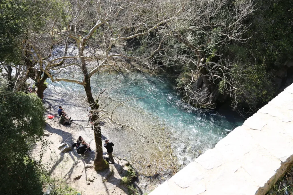 Η βλάστηση εδώ είναι οργιώδες και για να αφουγκραστείς απόλυτα, τους ήχους του νερού και των… νεράιδων, πρέπει να ακολουθήσεις το μονοπάτι, πίσω από το γεφύρι. Σε ένα λεπτό θα έχεις φτάσεις στις όχθες του Λούσιου. Εδώ ο χρόνος χάνει κάθε αξία και ο άνθρωπος γίνεται ένα, με τα υλικά της δημιουργίας του: χώμα και νερό!