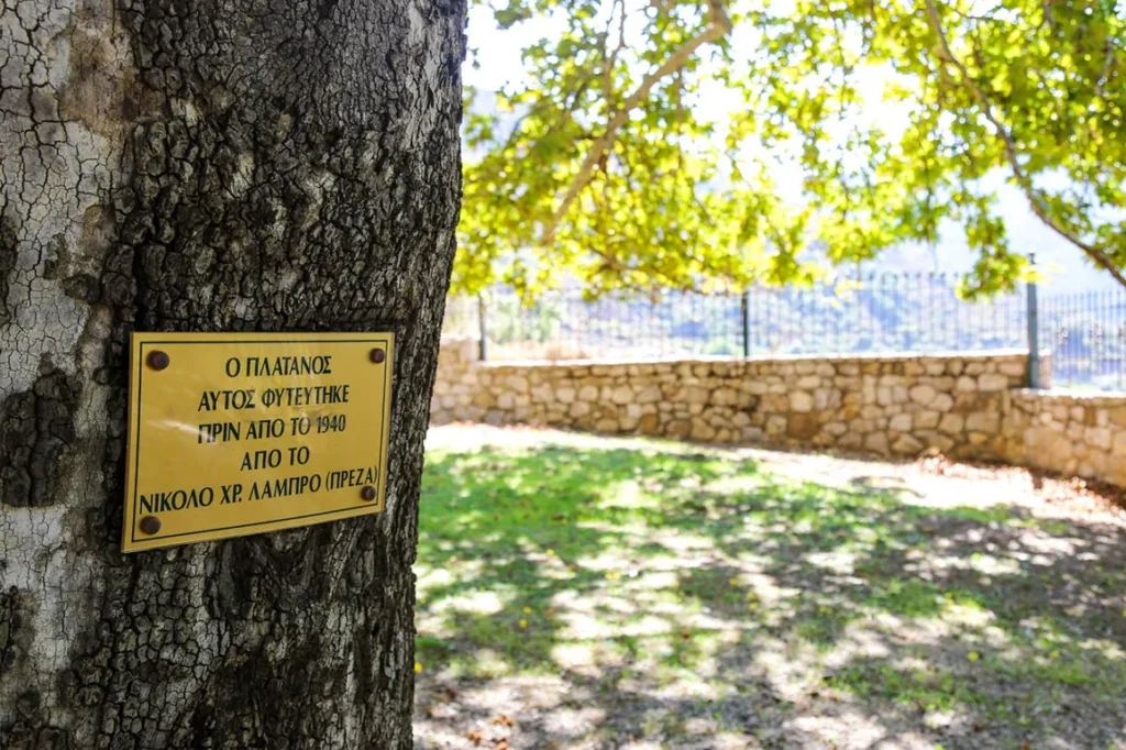 Η μεγάλη βρύση του οικισμού έχει άφθονο νερό και πολλή σκιά! Πάνω στα δέντρα υπάρχουν επιγραφές με τα ονόματα αυτών που τα φύτεψαν πριν από πολλές δεκαετίες. Ονόματα που σε κάποιον περαστικό προφανώς δε λένε τίποτα. Έχουν κι αυτά όμως τη δική τους σιωπηλή ιστορία.