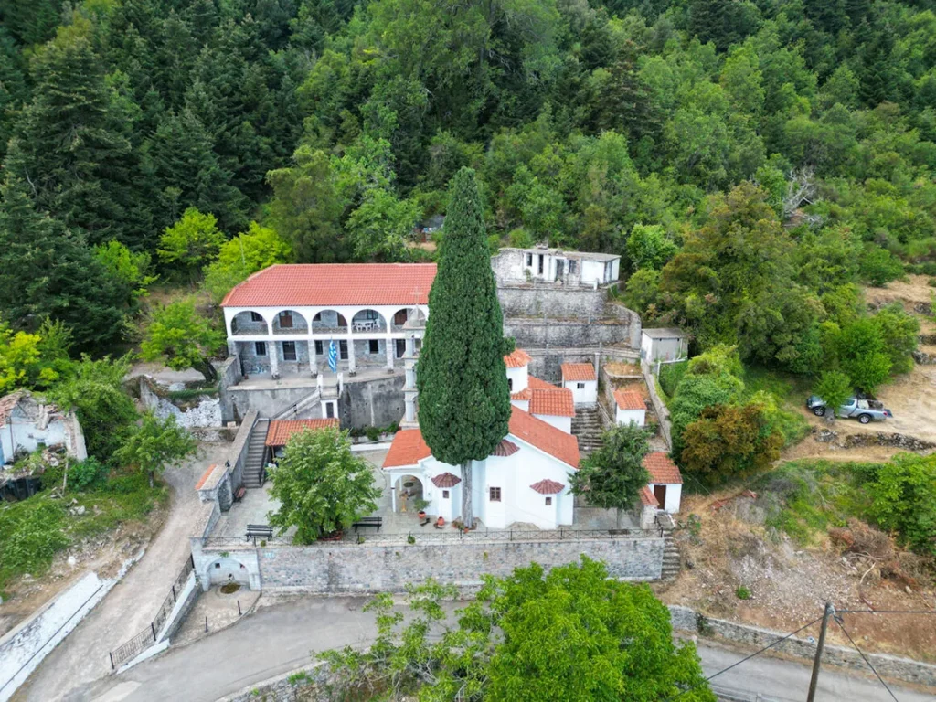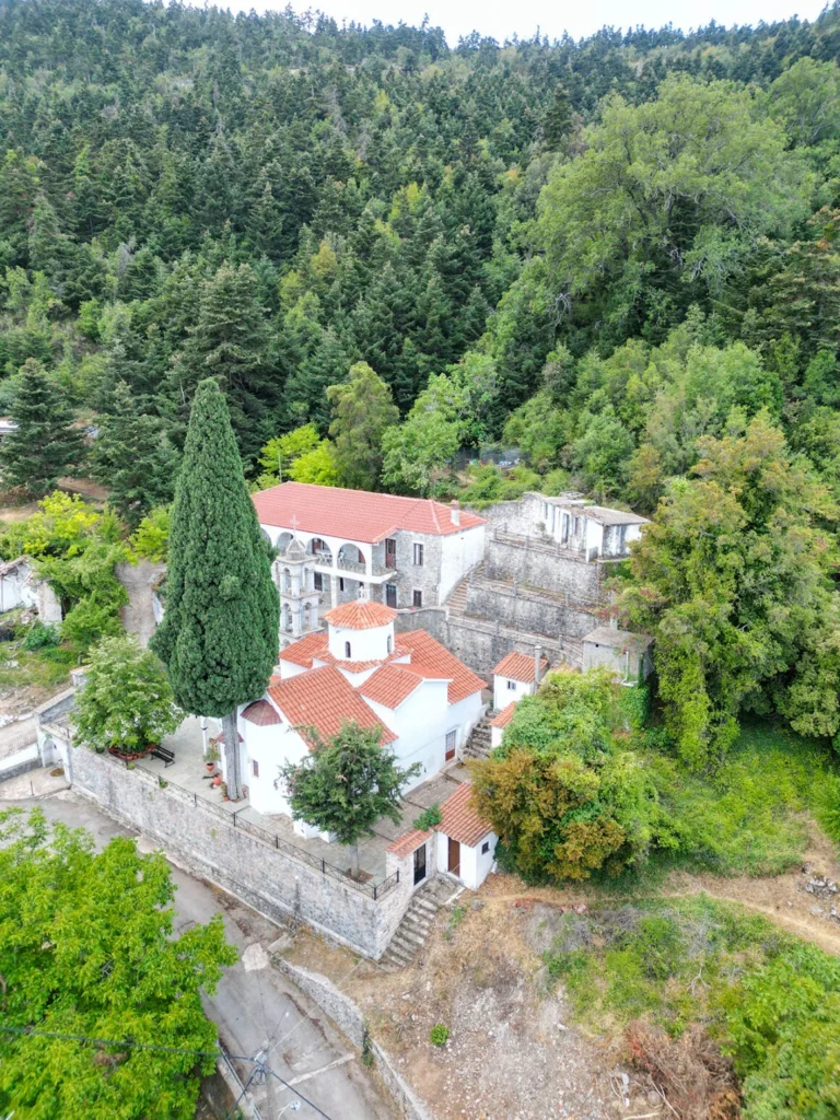 Η ιερά μονή κοιμήσεως Θεοτόκου, σε ένα από τα ψηλότερα σημεία του χωριού