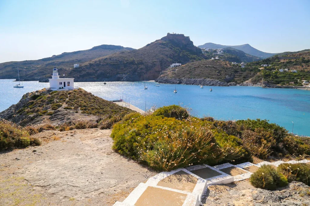 Ανέβα ας πούμε, ως την εκκλησία του Αγίου Γεωργίου πάνω στο ύψωμα και ύστερα πάρε το μονοπάτι μέχρι το φάρο. Κατέβα στο λιμάνι και περπάτα στην προκυμάια στην πίσω πλευρά του οικισμού.
