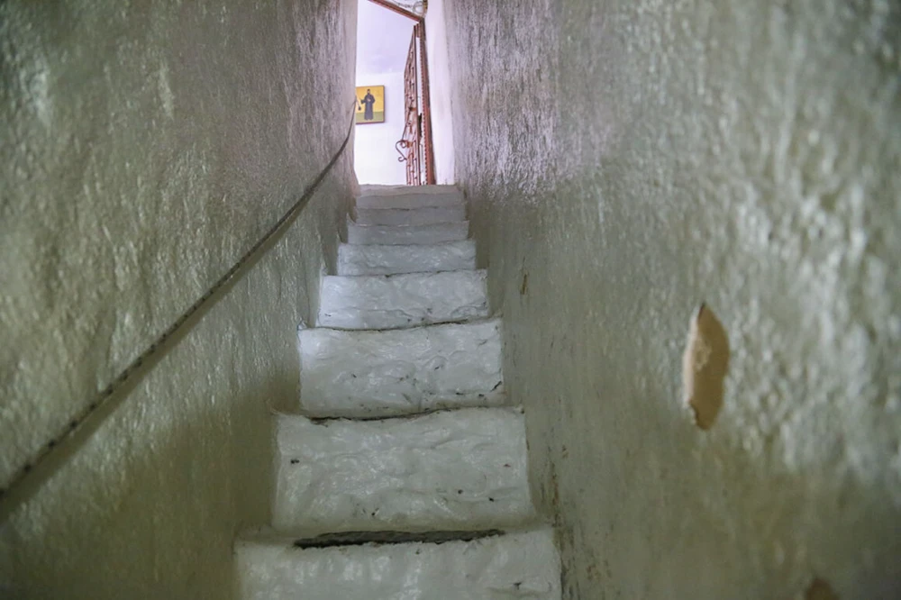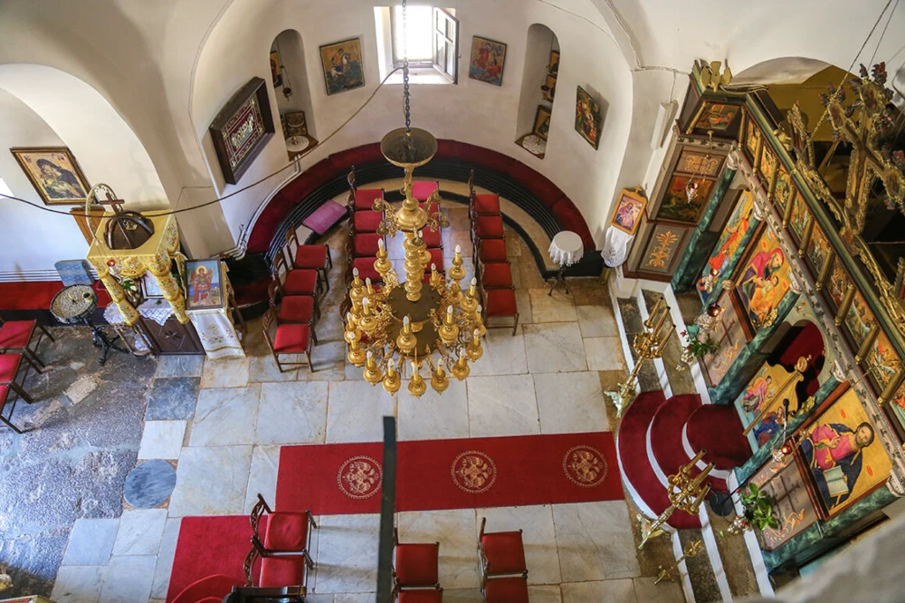 Όταν ανοίξει η μικρή πορτούλα, θα ξεκινήσεις σκυφτός να ανεβαίνεις τα 17 απότομα σκαλοπάτια στη σκοτεινή σούδα. Προσοχή γιατί γλιστράνε. Στο τέρμα της σκάλας, θα βρεθείς σε μια δεύτερη εκκλησία που εκ πρώτης, δεν πιστεύεις πως υπάρχει.