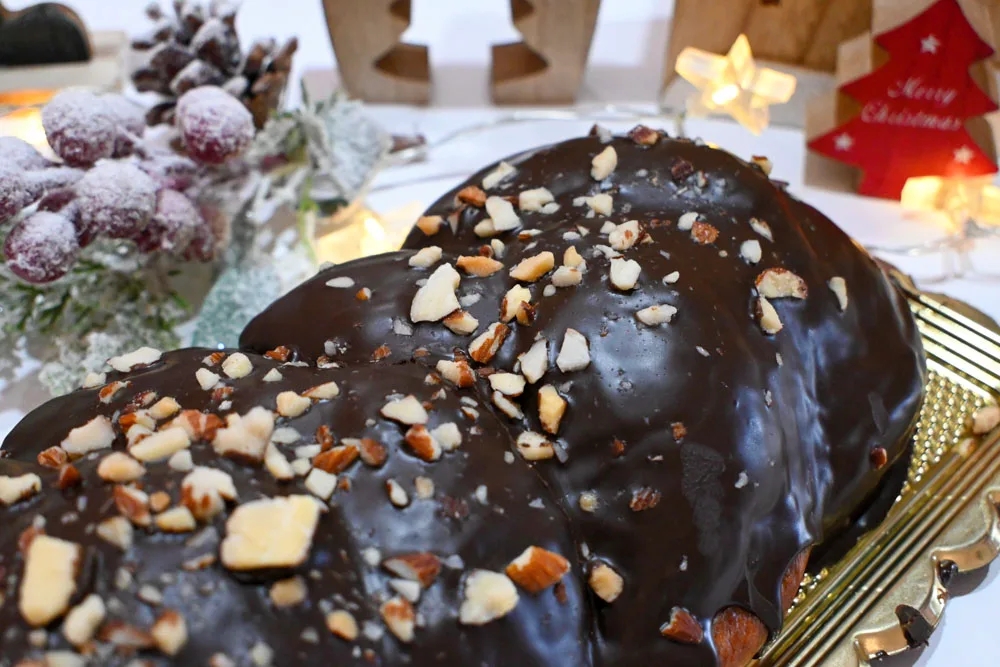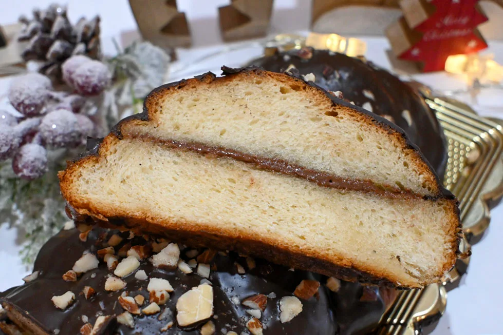 Τσουρέκι σιροπιασμένο και γεμισμένο με σοκολάτα
