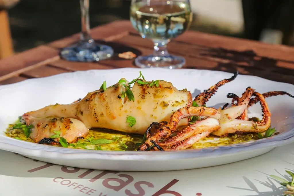 Από το μεσημέρι και μετά, στην κουζίνα τα τηγάνια και οι κατσαρόλες χορεύουν σε ρυθμούς τοπικών προϊόντων, φυσικών αρωμάτων και στους ξεχωριστούς συνδυασμούς γεύσεων του bistro.