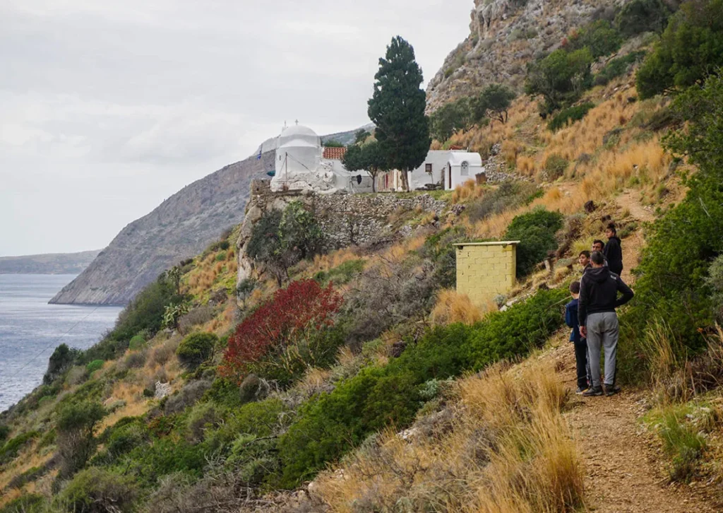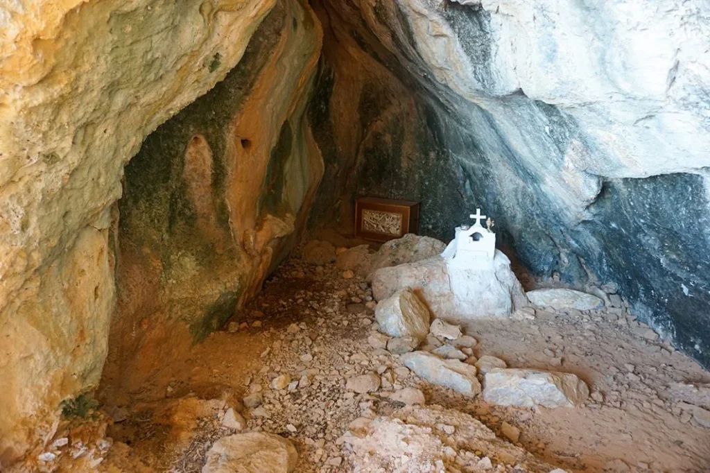 Μια άλλη σπουδαία πεζοπορία είναι το μονοπάτι προς το προσκύνημα της Αγίας Ειρήνης. Ένα καταπληκτικό μονοπάτι που ξεκινάει από το απολιθωμένο δάσος – 15 χλμ νότια της Νεάπολης. Η συνολική απόσταση είναι 6,5 χιλιόμετρα και θα περπατήσεις 2 ώρες. Ισχύει κι εδώ ό, τι και με το φάρο. Τα 4 χλμ χωματόδρομου μπορείς να τα κάνεις με αυτοκίνητο αλλά ο δρόμος είναι άσχημος και δεν το συνιστώ για συμβατικό αυτοκίνητο.