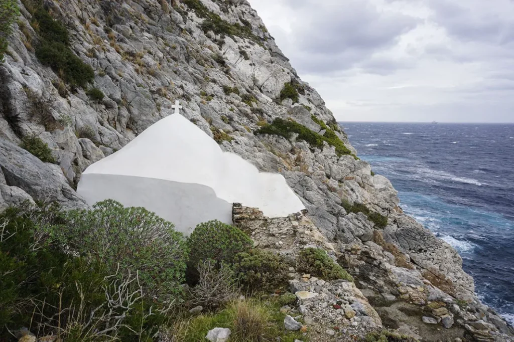 Πλήθος από ασκηταριά πάνω στο ακρωτήρι μαρτυρούν την έντονη παρουσία ασκητών και μοναχών κατά το παρελθόν.