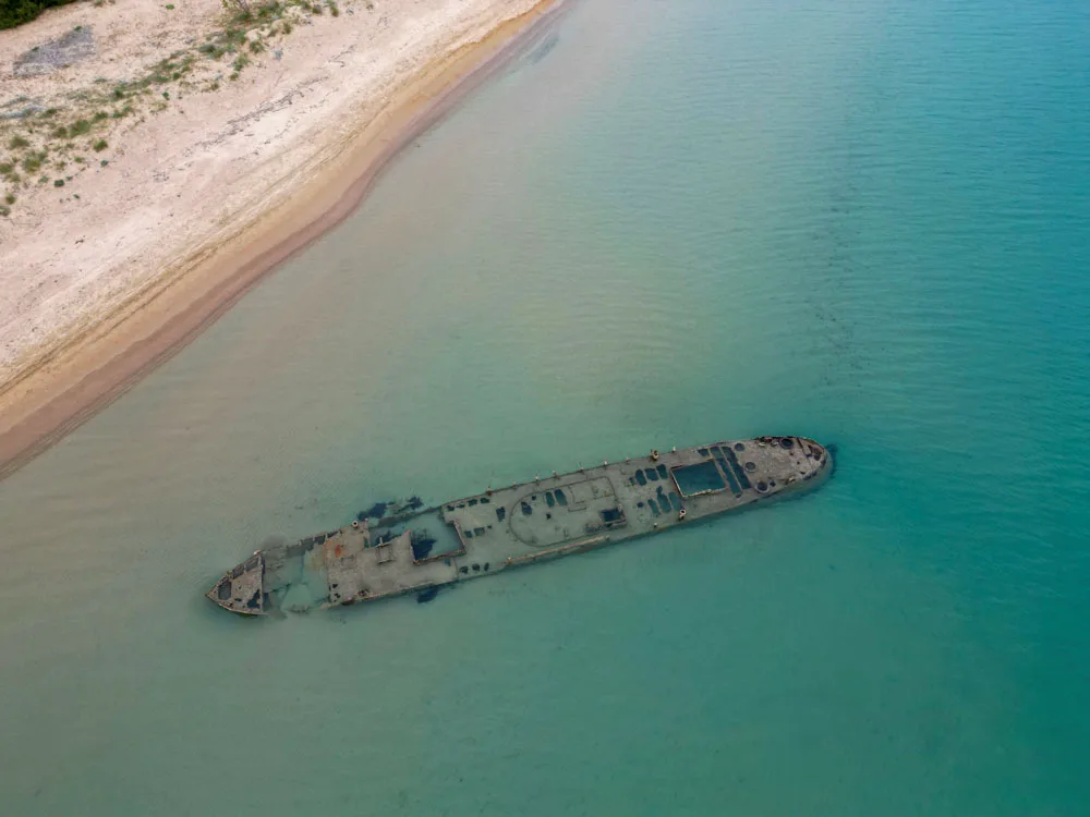 Το sosάκι (υποκοριστικό του sos ντε!) όμως εδώ, είναι ένα ναυάγιο μέσα στο νερό και πολύ έξω στη θάλασσα. Τόσο, που το πλησιάζεις κολυμπώντας. Φαίνεται με γυμνό μάτι, αλλά αν θέλεις να φτάσεις κοντά, πρόσεχε μην ακουμπήσεις τα σκουριασμένα σίδερα και τραυματιστείς.