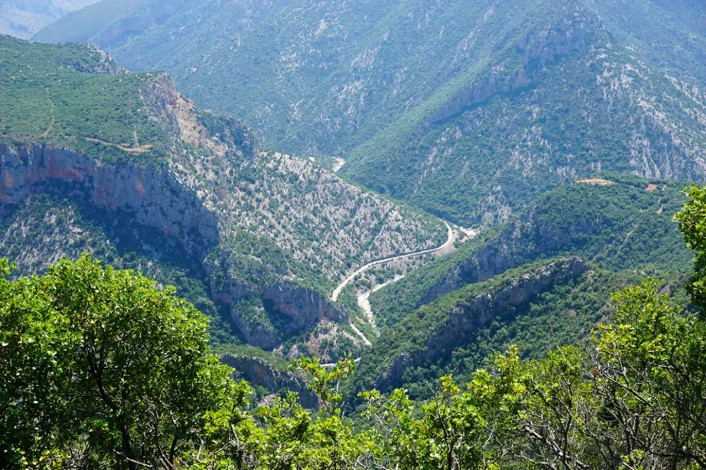 Αν όμως θέλουμε να γλιτώσουμε τμήμα της διαδρομής (περίπου 5 χιλιόμετρα) μπορούμε να “κόψουμε” από το μονοπάτι. Σαφώς η ιδιαιτερότητα του εδάφους θέλει προσοχή, μετά από τόσα χιλιόμετρα που έχουμε κάνει σε άσφαλτο. Όμως, το περιβάλλον, η θέα και η αίσθηση της ευφορίας πάνω στο βουνό, διευκολύνει κατά πολύ τα πράγματα.