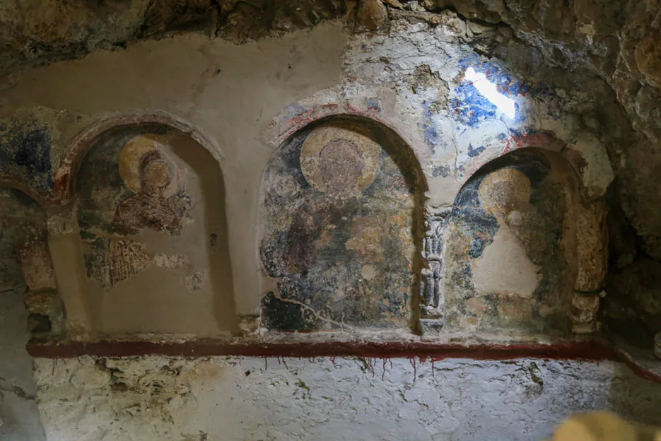 Ο Άγιος Λουκάς είναι χτισμένος, δίπλα ακριβώς από την κούρμπα ενός βράχου. Καταλαμβάνει μόλις μερικά τετραγωνικά μέτρα (ίσως όχι παραπάνω από τέσσερα ή πέντε) και πραγματικά είναι μια σταλιά. Η πόρτα είναι κλειστή αλλά αν κοιτάξεις στο εσωτερικό, θα δεις μερικές μοναδικές αγιογραφίες να στολίζουν τον τοίχο της μικροσκοπικής εκκλησίας.