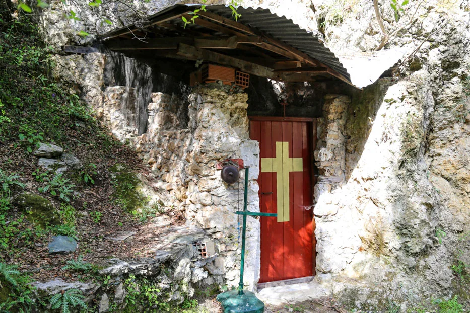 Δίπλα ακριβώς από την είσοδο του φαραγγιού, αν πατήσουμε στις πέτρες που είναι μέσα στο νερό και περάσουμε απέναντι, θα βρεθούμε στην αρχή ενός άλλου μονοπατιού. Αν το ακολουθήσουμε, σε δέκα περίπου λεπτά μόνιμα ανηφορικής πορείας, θα έχουμε βρεθεί στο πανέμορφο εκκλησάκι του Αγίου Λουκά.
